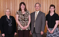 Staff members are (from left with Wong): Janet Syria, senior secretary; Beth Sanderson, principal secretary II; and Kathy Solka, principal secretary.