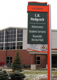“In the first year, we wanted to have the biggest impact on recruitment that we could, so we went out of sequence a bit with first-time campus visitors in mind,” said Jim Thams (Engineering and Planning). “Our goal was to install trailblazers on city roads to mark the most direct routes to campus, identify the primary entrance to campus on Seventh Street and mark the building most first-time visitors are looking for, which is Hedgcock. This is the only new building identifier installed to date. The rest will come later in subsequent phases.