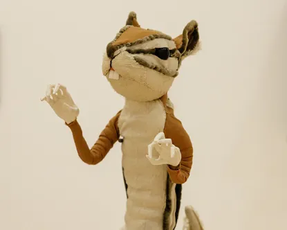 Just a few samples of works on display in Critters are George Shiras’s pioneering night photography wildlife shots; a cat painting by Vida Lautner (accomplished artist and mother of iconic architect John Lautner ’33 AB, LC); a primitive looking sewn chipmunk sculpture by Corrie Steckelberg; a woodcut porcupine print by local artist Ben Bohnsak; an original illustration from a 1963 Sports Afield cover, part of a large collection of illustrations; and a few things people might be surprised to see, like an 1975 lithograph etching by Salvador Dali titled “Cybernetic Lobster Phone,” which is part of a suite of ten Dali prints in the collection.