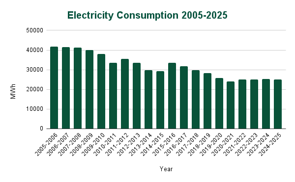 The University also produces electricity on-site through cogeneration at the Ripley Heating Plant, where waste heat is used to energize the turbine that produces electricity for the campus.