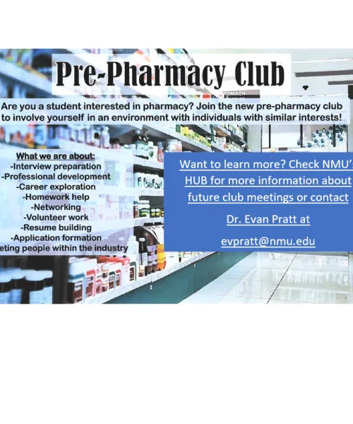 The doctor of pharmacy (Pharm D) is the standard degree in the pharmacy area. A Pharm D degree requires six to eight years of study. The first two to four years of these programs are considered pre-pharmacy and are offered by NMU. The bachelor’s degree in chemistry or biochemistry may be applied toward admission into any of the above mentioned degree programs.