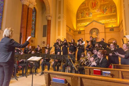 Our professors love music, but they love working with students even more. Students get to share in Dr. Erin Colwitz's Beatles obsession, Dr. Strain's devotion to drums and Dr. Flaherty's addiction to all things jazz. Join in our close-knit music family to explore, acquire expertise and expand your musical horizons.